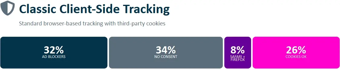 Ces trois facteurs se cumulent. Avec un tracking standard, vous ne voyez qu’environ 25 % de ce qui se passe. Et ce que vous voyez n’est pas forcément représentatif.
